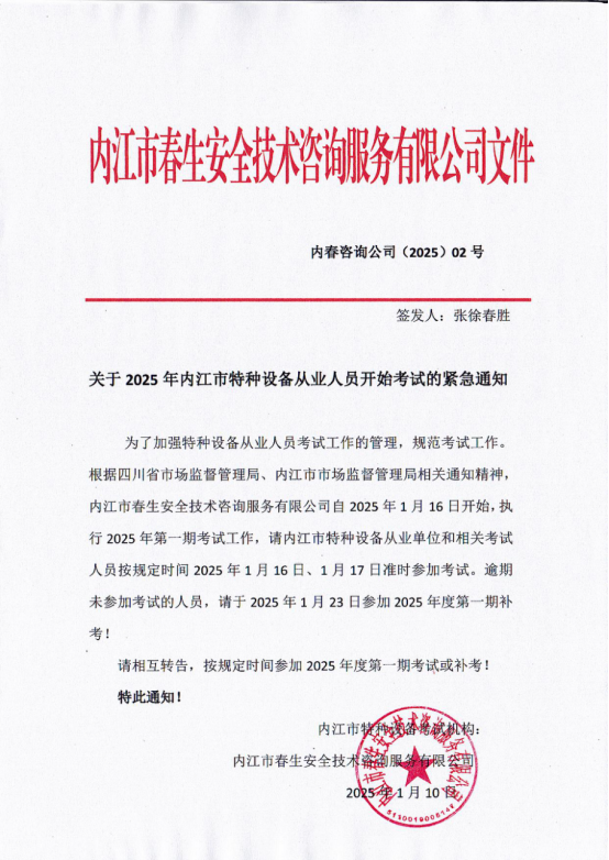 關(guān)于2025年內江市特種設備從業(yè)人員開(kāi)始考試的緊急通知