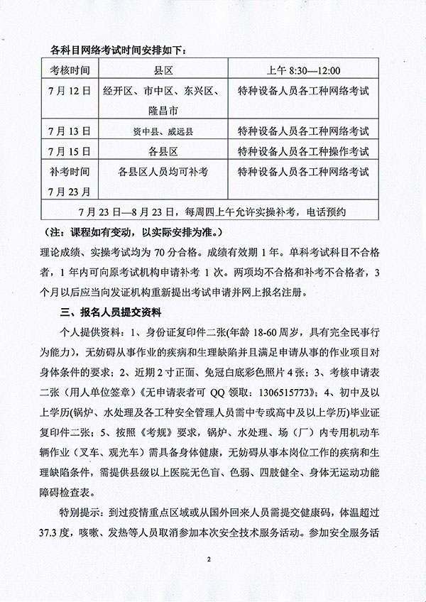 2021年春生公司05期特種設備作業(yè)人員考核時(shí)間安排