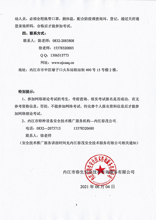 2021年春生公司04期特種設備作業(yè)人員考核時(shí)間安排
