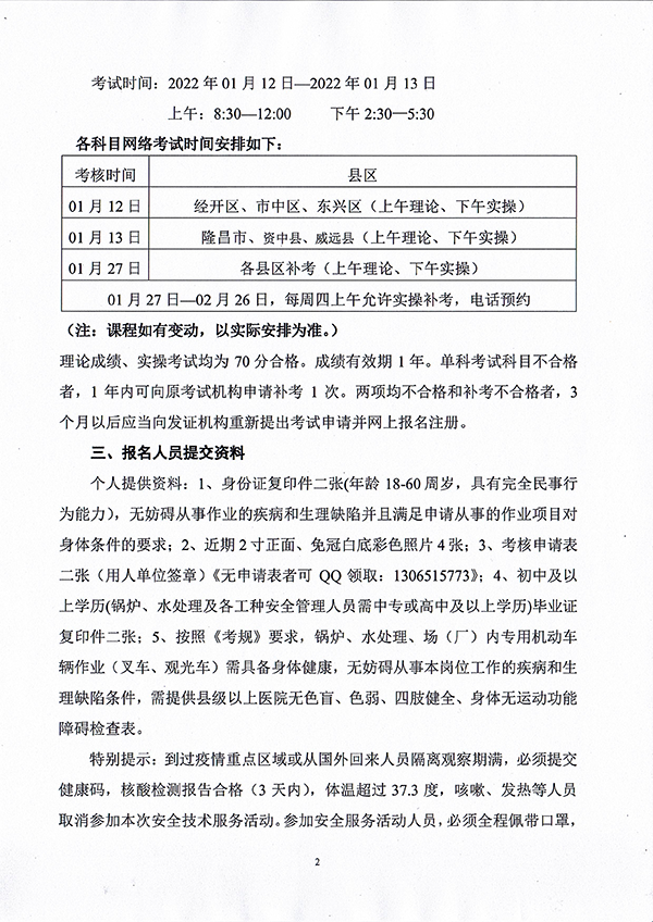 2022年春生公司01期特種設備作業(yè)人員考核時(shí)間安排
