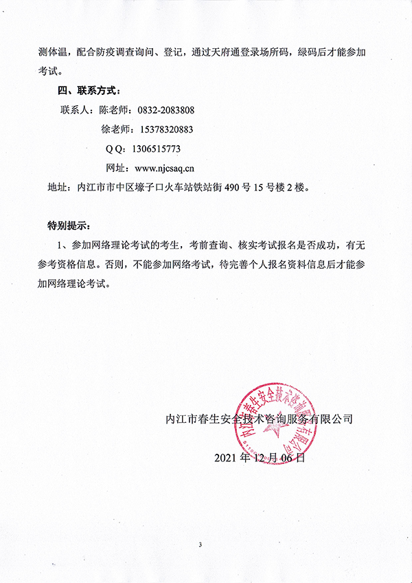 2021年春生公司06期特種設備作業(yè)人員考核時(shí)間安排