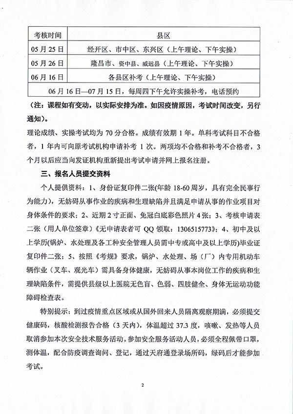 2022年春生公司06期特種設備作業(yè)人員考核時(shí)間安排