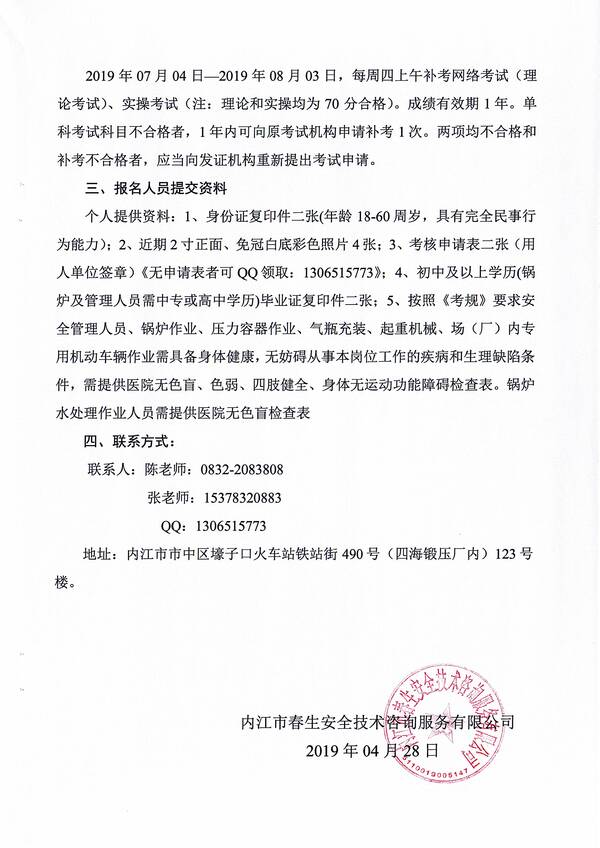 2019年第四期特種設備作業(yè)人員考核培訓班的通知